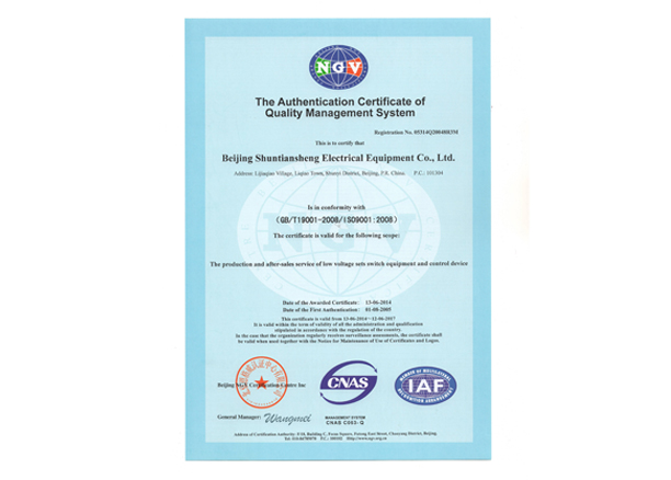ISO9001-2008質(zhì)量管理體系認(rèn)證證書-中文