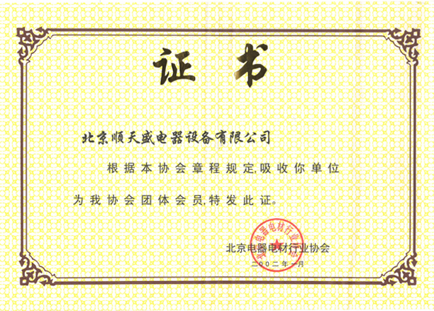 北京電器電材行業(yè)協(xié)會(huì)證書2002