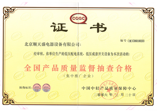 全國產(chǎn)品質(zhì)量監(jiān)督抽查合格證書2006