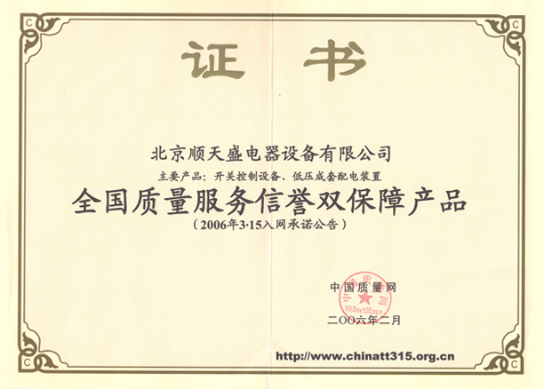 全國質(zhì)量服務(wù)信譽(yù)雙保障產(chǎn)品2006年315入網(wǎng)